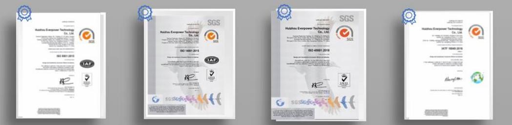 EVERPOWER technology has successfully passed the following system certification and product certification: